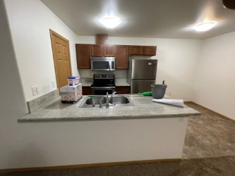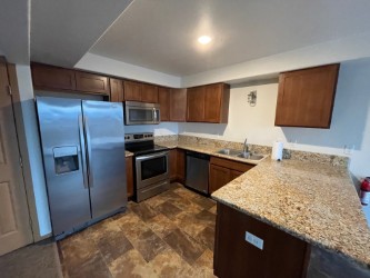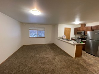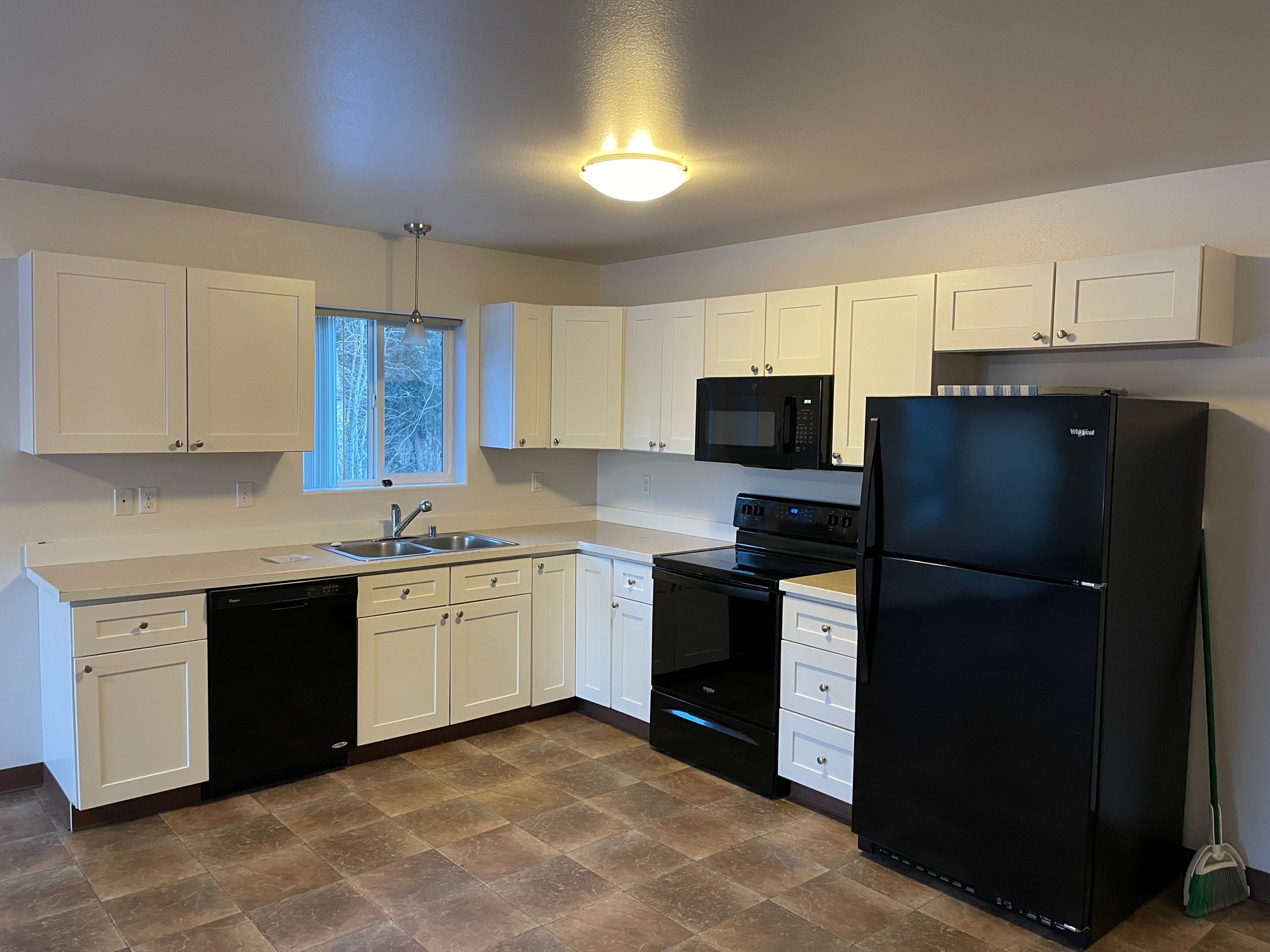 Description #2424 This is a penthouse (top floor) level, apartment, with 3 bedrooms, 1 bathroom, in a great commuter location. Beautiful views of Pioneer Peak. Kitchen is good sized with lots of cabinets, electric range, dishwasher, and pantry.