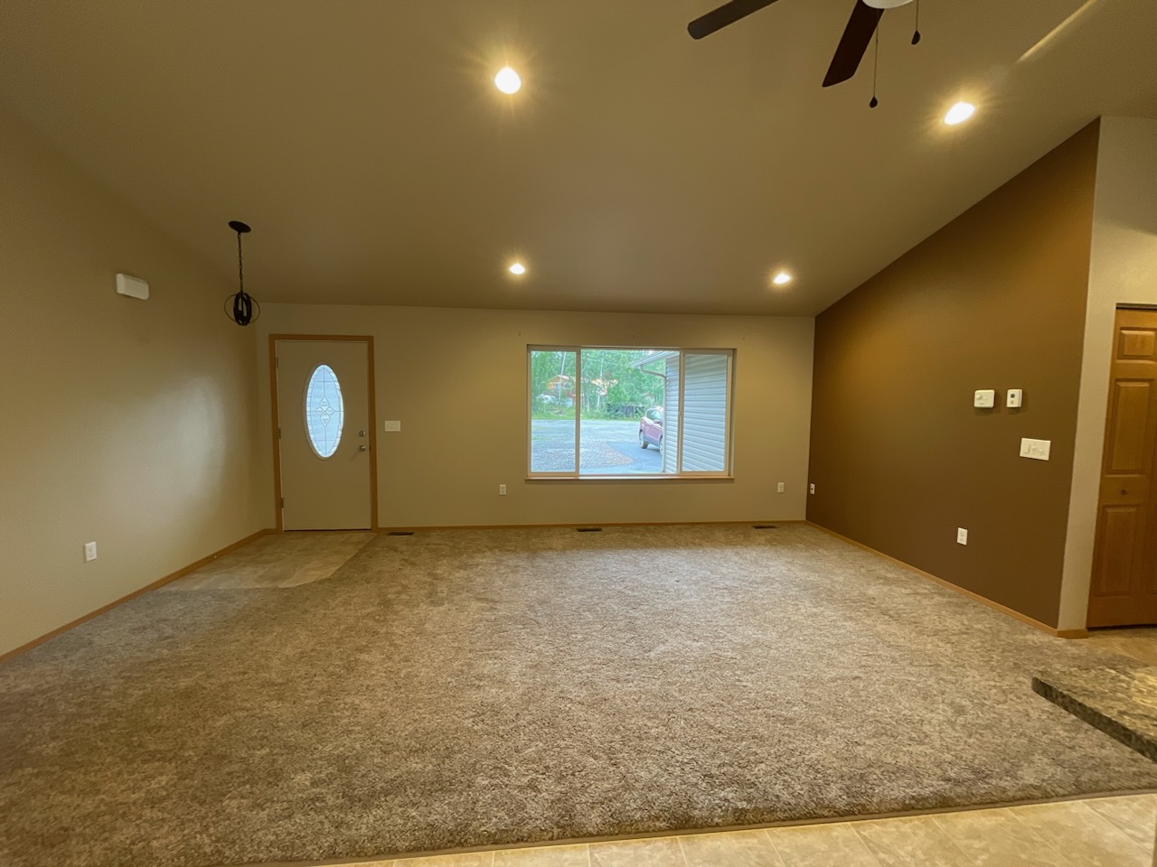 Vaulted ceilings in the living room and kitchen. Front-load washer and dryer in unit. 1 car garage, extra gravel pad for parking other vehicles. Super location for commuters and shoppers. Dogs on approval with pet deposit, limit 2. No cats. Pet deposit $500 for first dog, $150 for additional one. $100 more in rent per month for pets. Tenant pays gas, electric and trash. No smoking in unit. 1 year lease.
